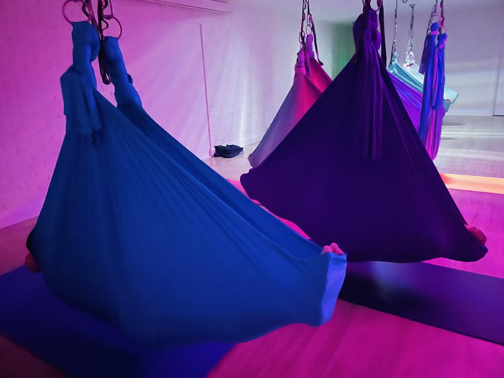 Premium UK certified, 6m long, 2.8m wide, medium stretch, aerial hammocks. Suitable for aerial yoga & as aerial slings.
