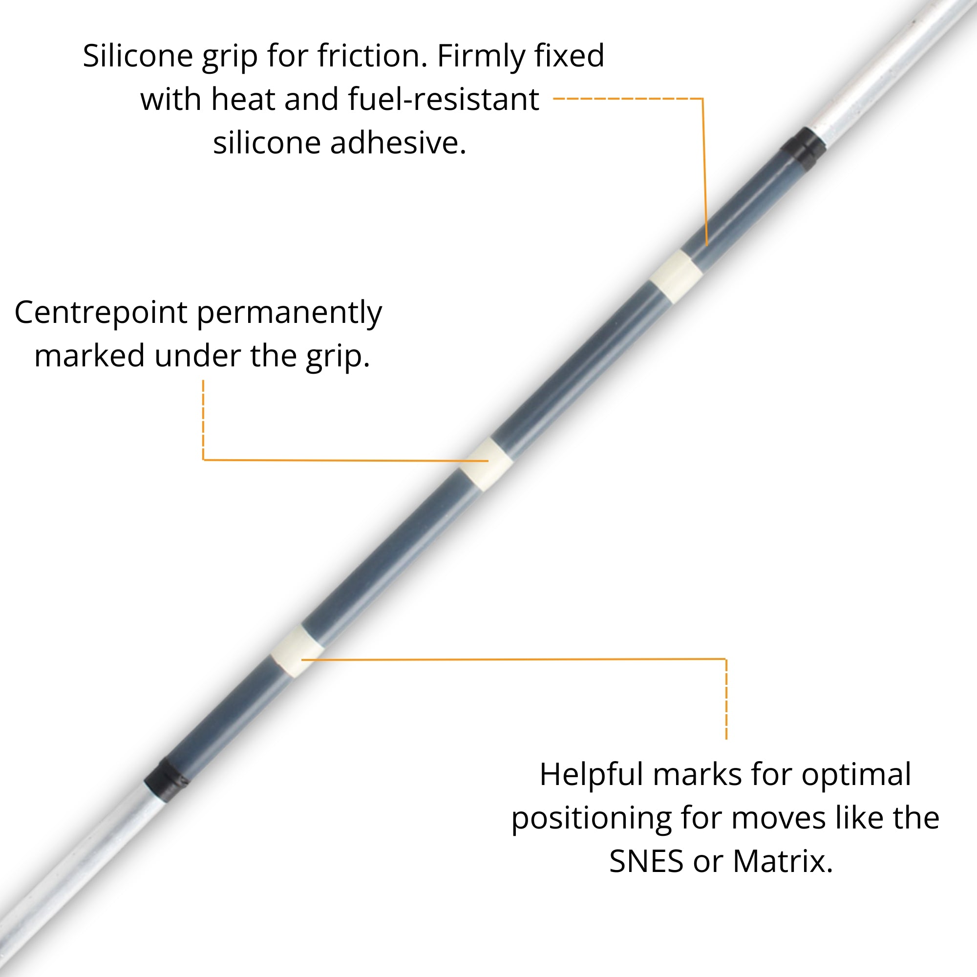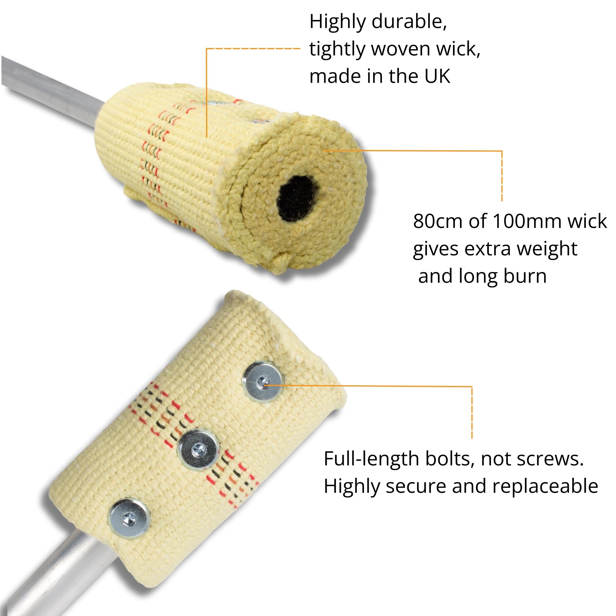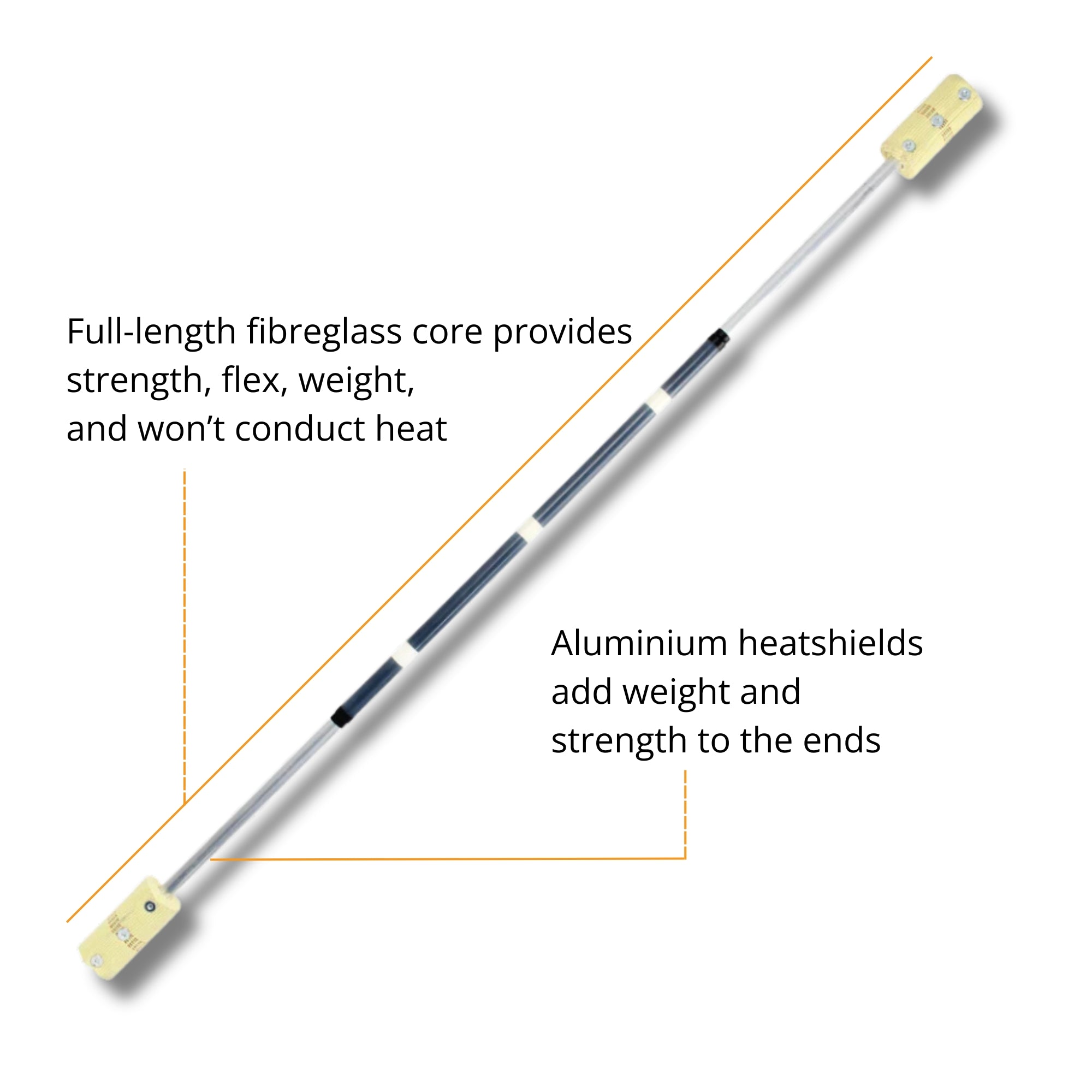 Ultra-strong. Momentum rich. Full fibreglass core. A professional contact fire staff with large wicks.