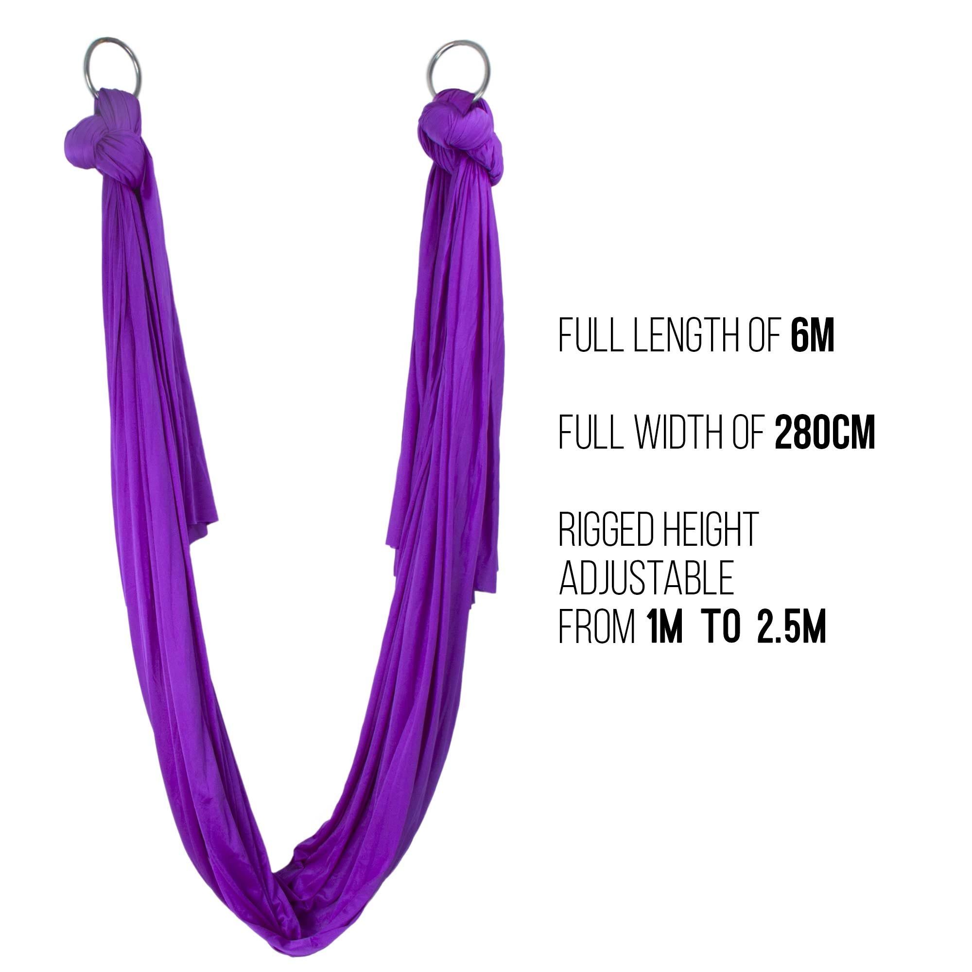 Premium UK certified, 6m long, 2.8m wide, medium stretch, aerial hammocks. Suitable for aerial yoga & as aerial slings.