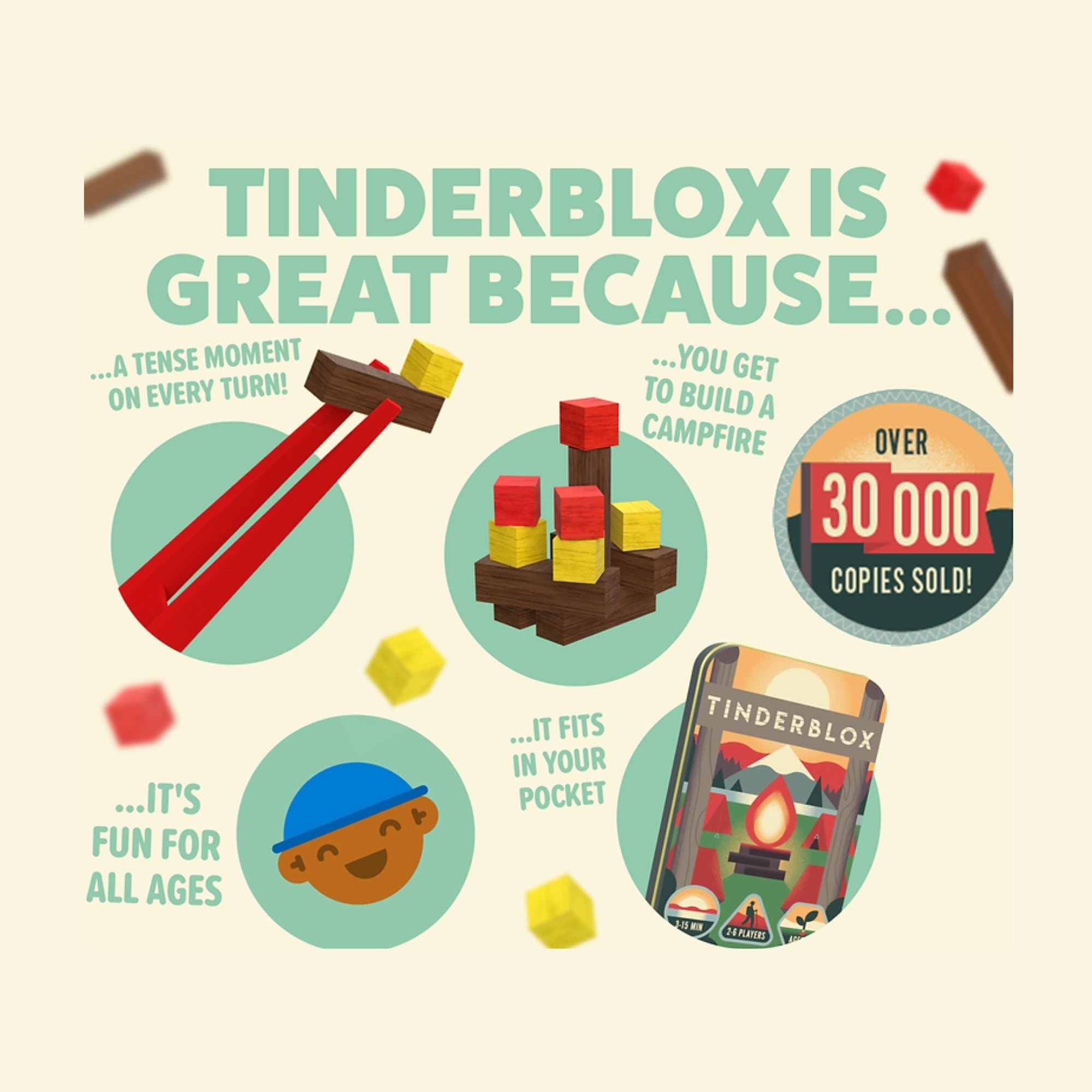 Tinderblox is a fun, easy-to-learn dexterity game that comes in a pocket-size mini-tin, so you're always ready to play.