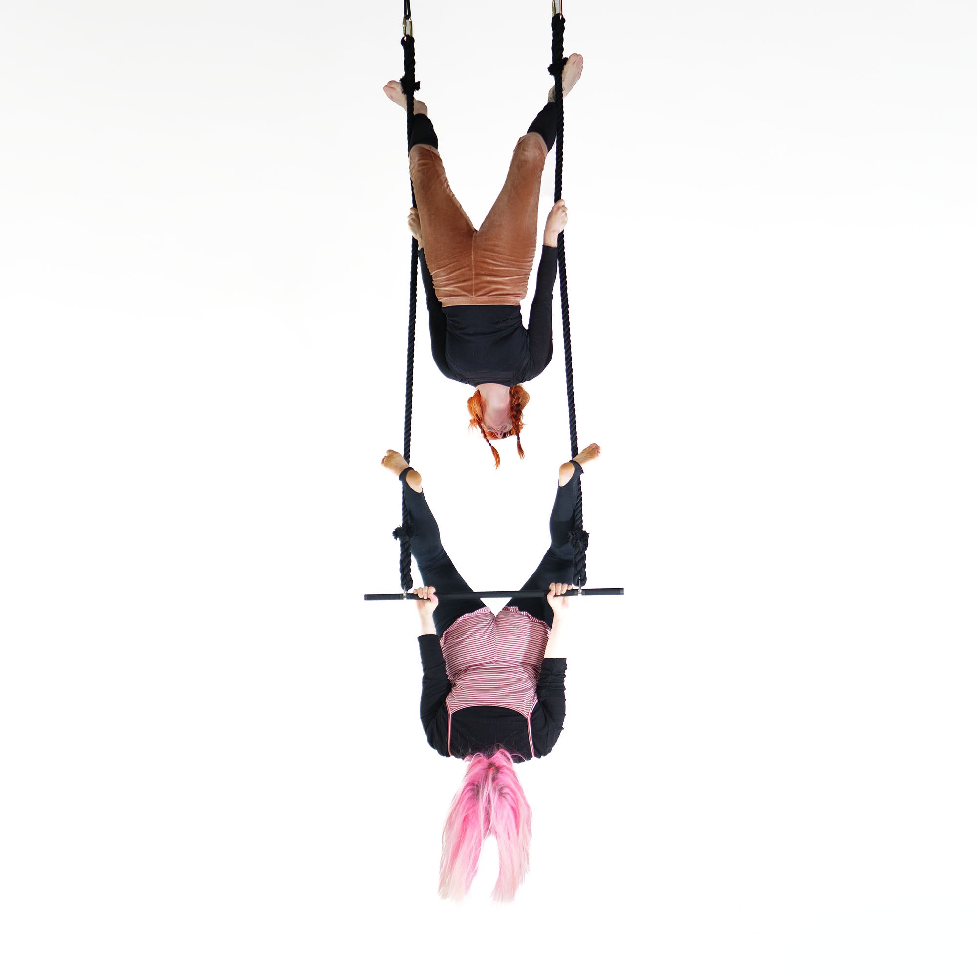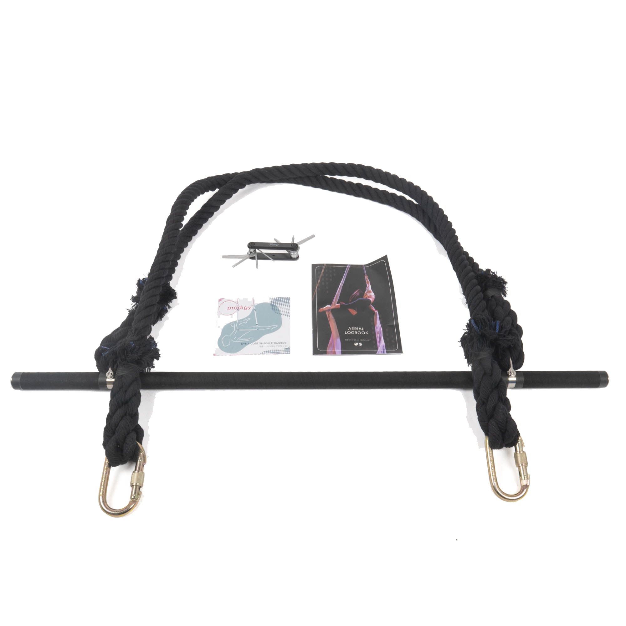 This extended trapeze from Prodigy Aerial combines the versatile shackle style with modern Dyna-Core ropes, which feature minimal stretch and no bounce.