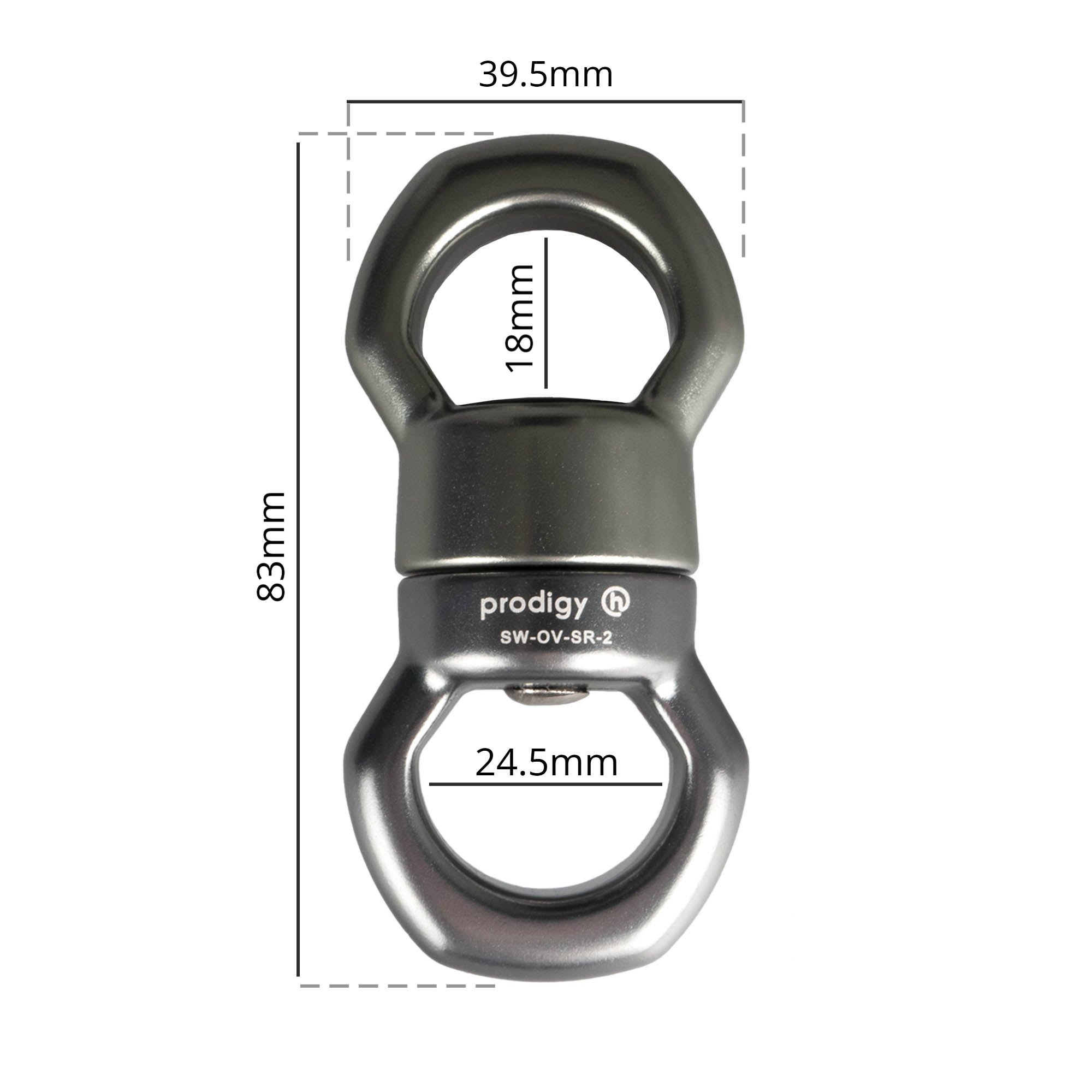 The SR-2 is a small but strong, 22kN aluminium swivel with a stainless steel bearing.